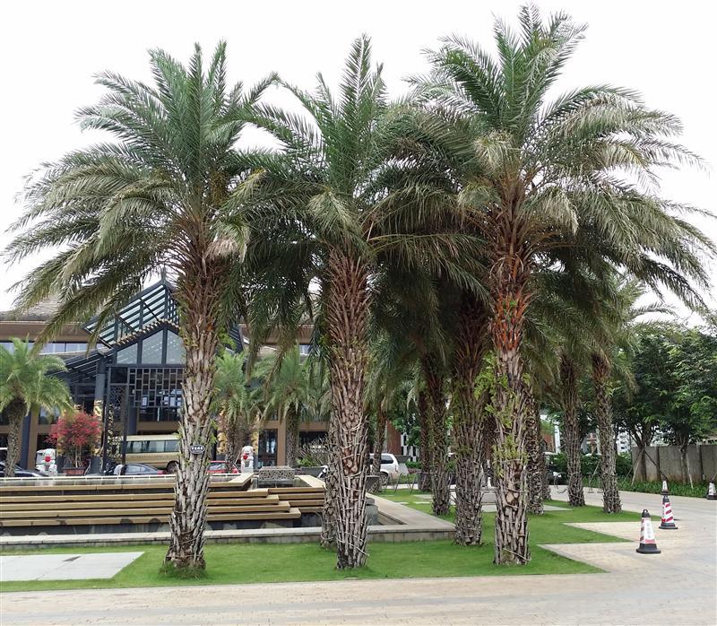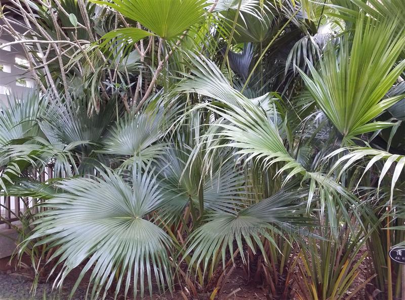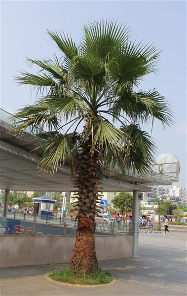 不要认为蒲葵生来矮小噢,它可以长得和椰子树一样的高大的。下面这棵是海口火车东站门口的一棵蒲葵。